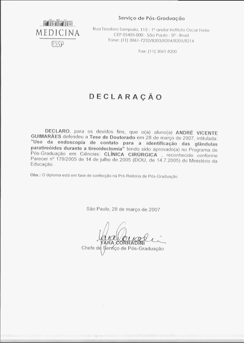 Na minha formação acadêmica, concluí mestrado em Cirurgia de Cabeça e Pescoço no Hospital Heliópolis e doutorado e pós-doutorado pela Faculdade de Medicina da USP. Sou professor livre-docente pela mesma instituição e atuo como professor assistente na Disciplina de Cirurgia de Cabeça e Pescoço do Hospital das Clínicas da USP.