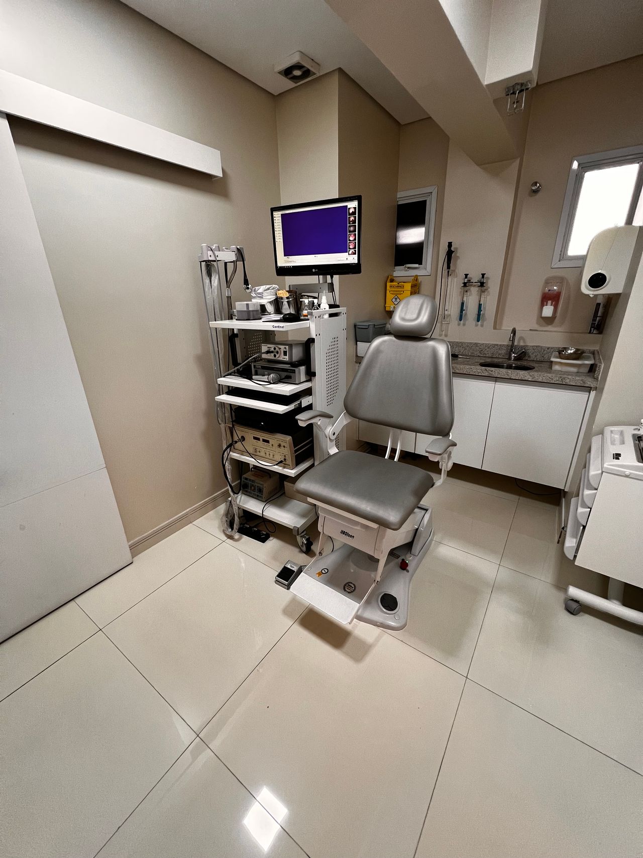 E consultório bem equipado.