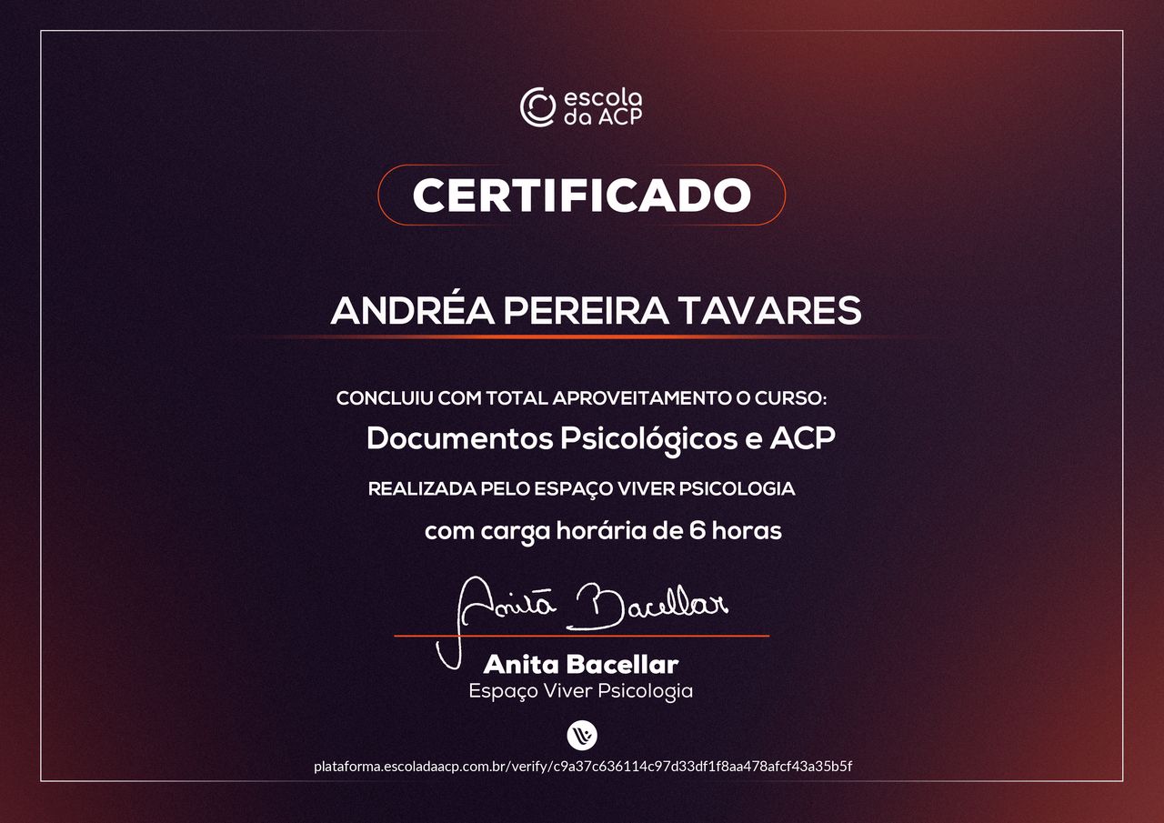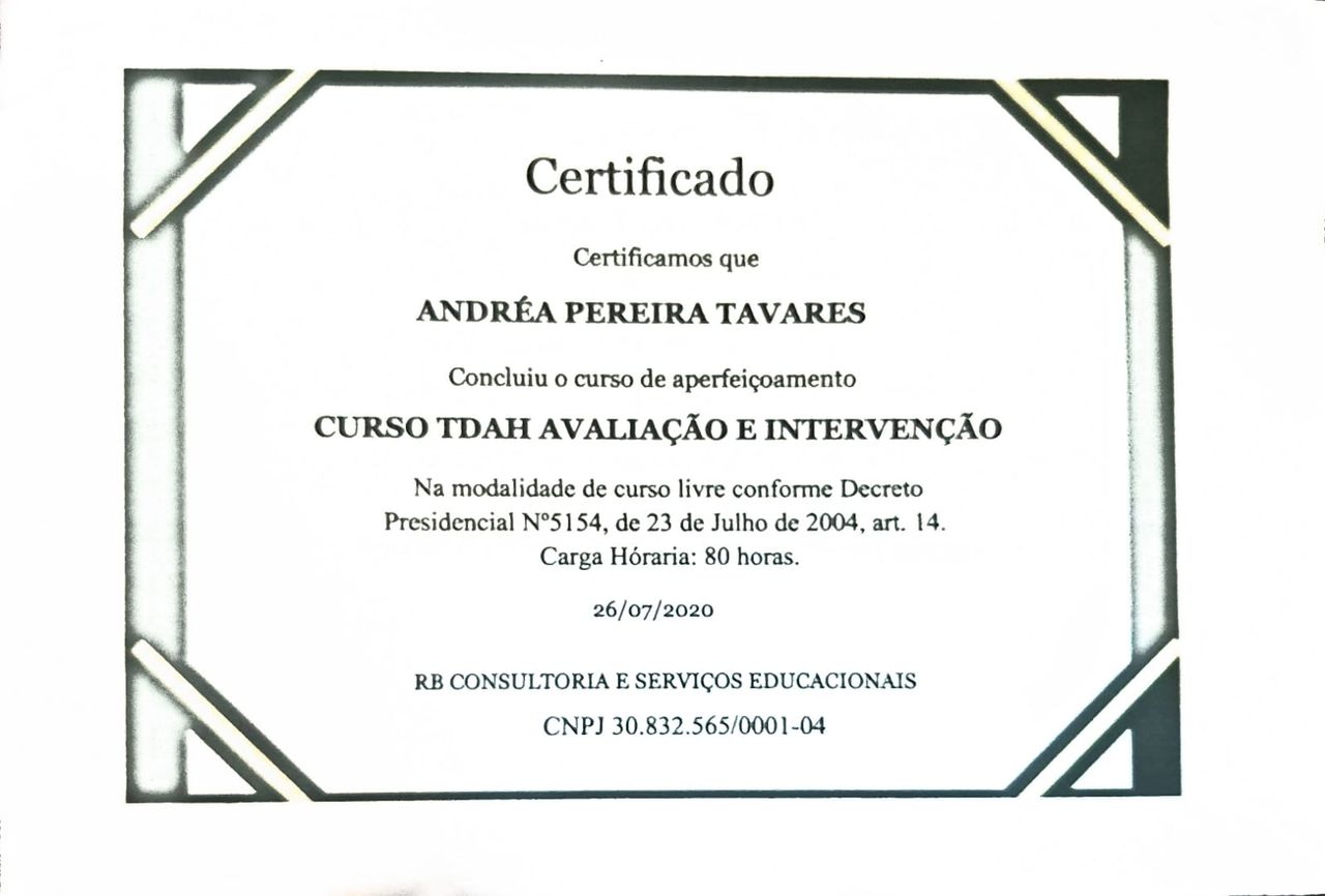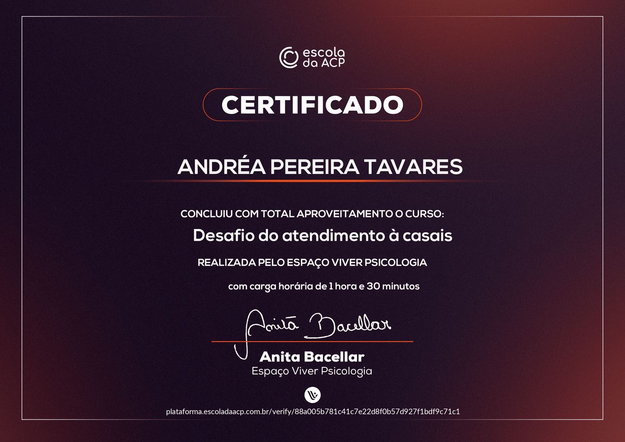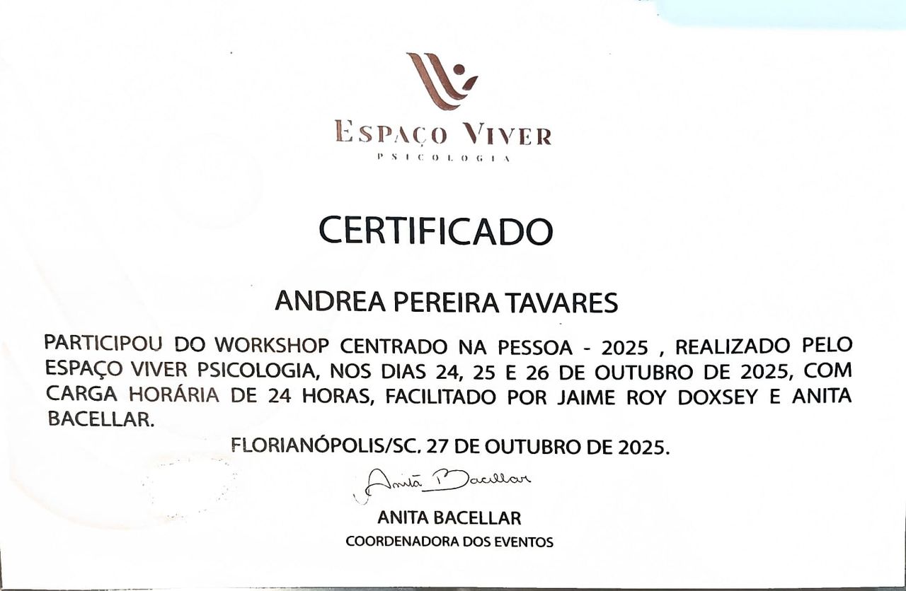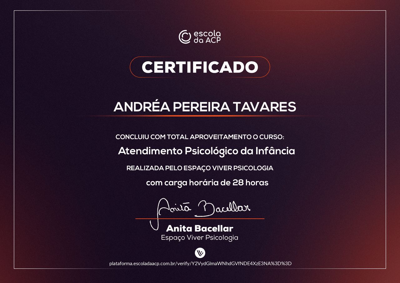 Quais são as principais especialidades de Andréa Tavares?Andréa Tavares é psicóloga. Te mostramos alguns dos serviços oferecidos pelo especialista graças à sua trajetória e vasta experiência: Teleconsulta, Atendimento psicológico online, Atendimento Online em Psicoterapia, Terapia online, Atendimento Psicológico online para adulto, Terapia de Casal Online, Psicoterapia online.