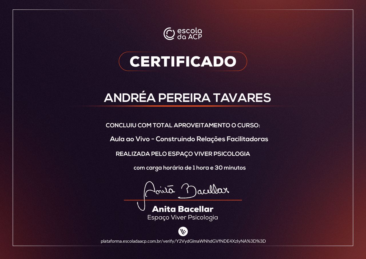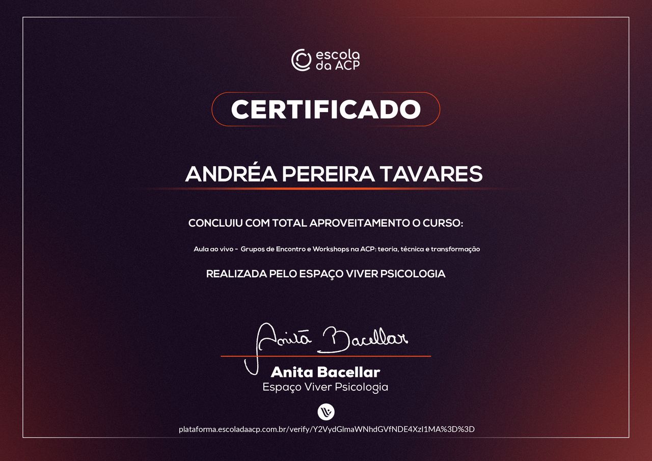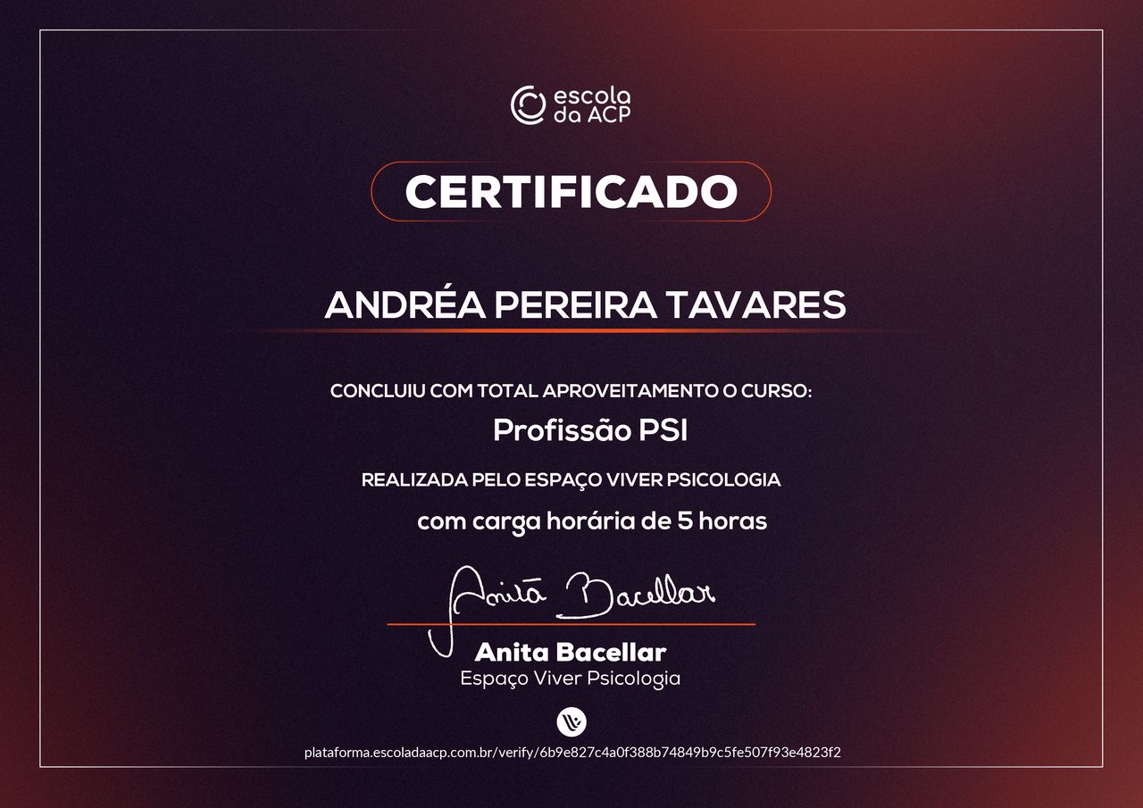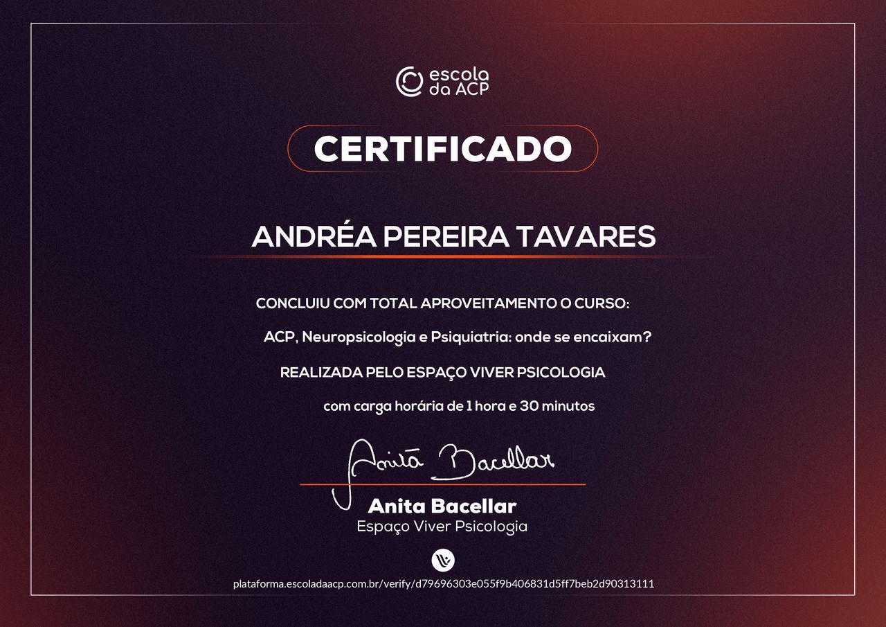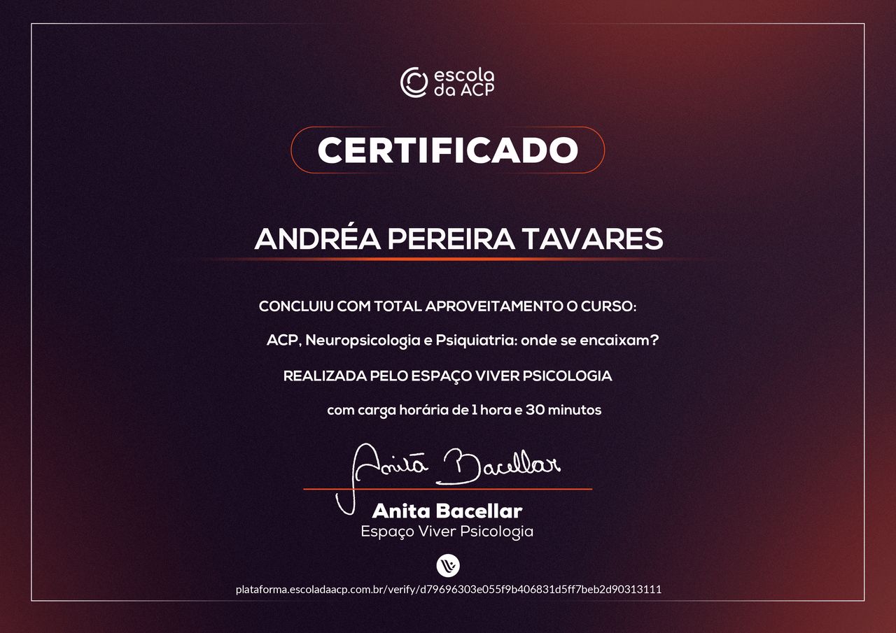 Quais são as principais especialidades de Andréa Tavares?Andréa Tavares é psicóloga. Te mostramos alguns dos serviços oferecidos pelo especialista graças à sua trajetória e vasta experiência: Teleconsulta, Atendimento psicológico online, Atendimento Online em Psicoterapia, Terapia online, Atendimento Psicológico online para adulto, Terapia de Casal Online, Psicoterapia online.