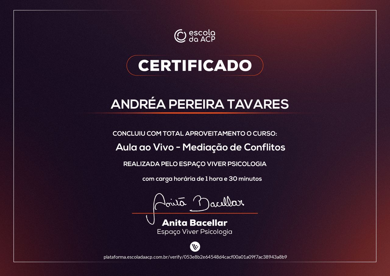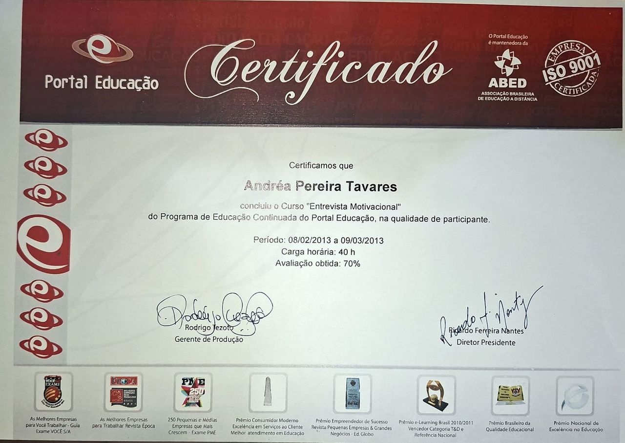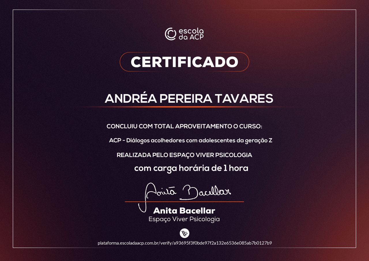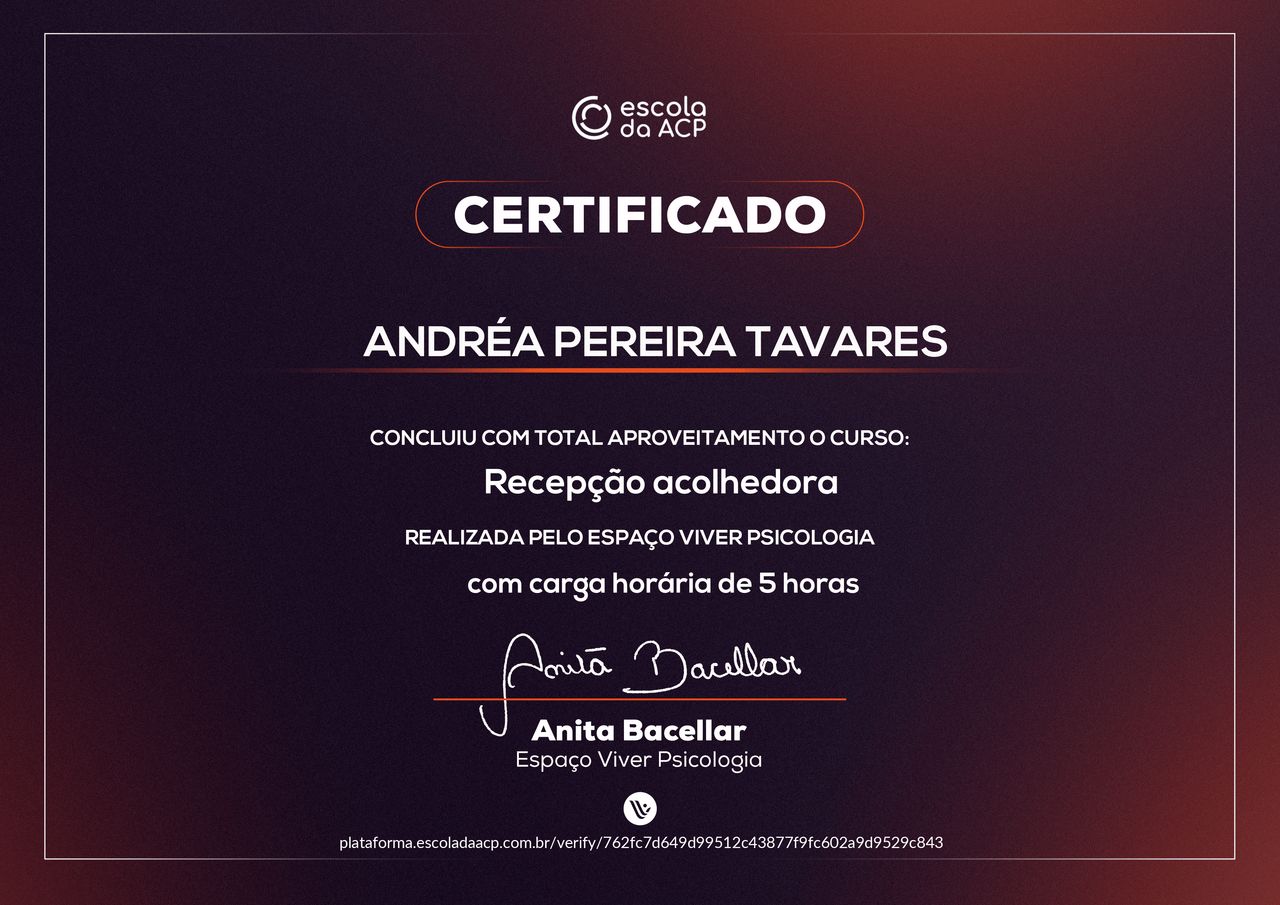 Quais são as principais especialidades de Andréa Tavares?Andréa Tavares é psicóloga. Te mostramos alguns dos serviços oferecidos pelo especialista graças à sua trajetória e vasta experiência: Teleconsulta, Atendimento psicológico online, Atendimento Online em Psicoterapia, Terapia online, Atendimento Psicológico online para adulto, Terapia de Casal Online, Psicoterapia online.