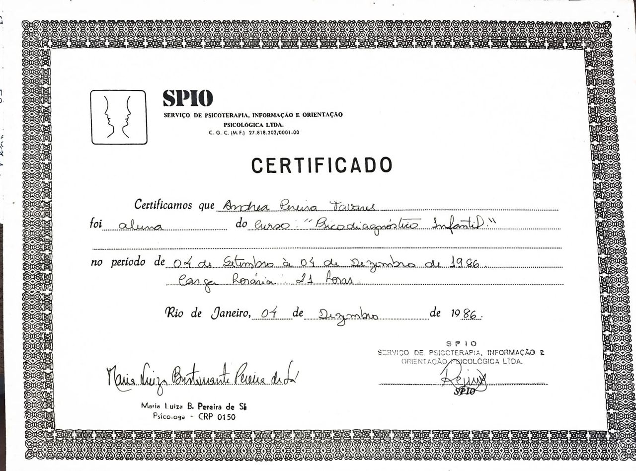 Tenho especialidade em avaliação psicológica, porém não trabalho com avaliação. Gosto do atendimento interpessoal .