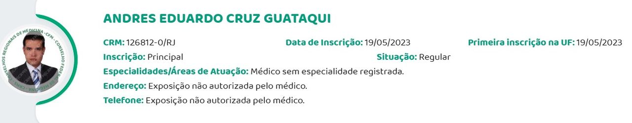 Número de registro: CRM RJ 1268120 - RQE Não encontrado para Radiologia
