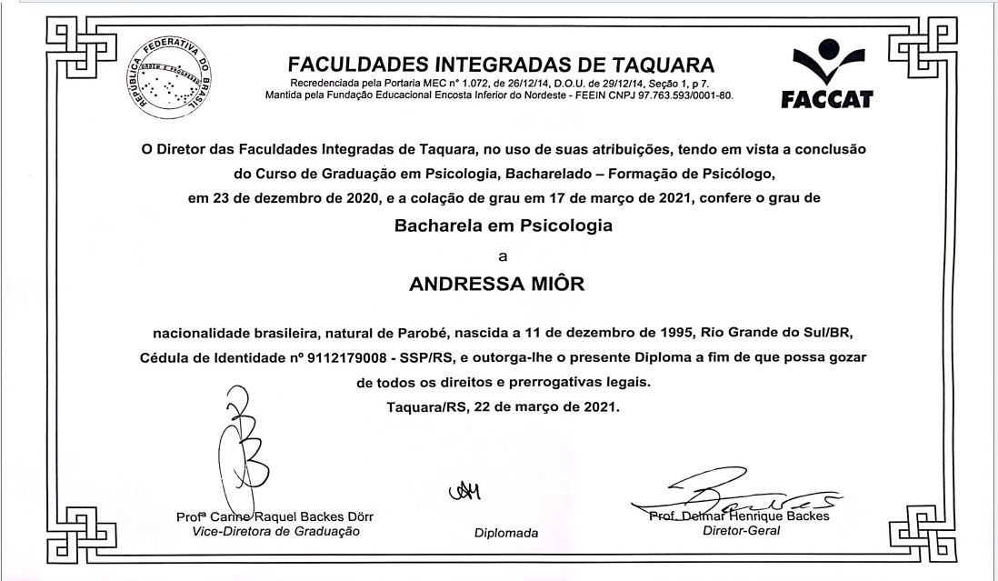 Graduada pela FACCAT desde 2020.