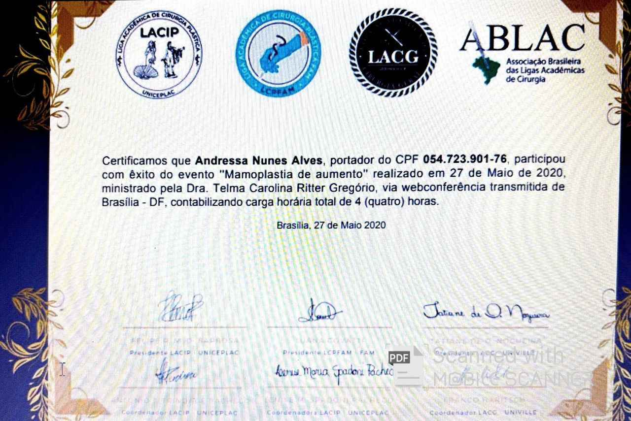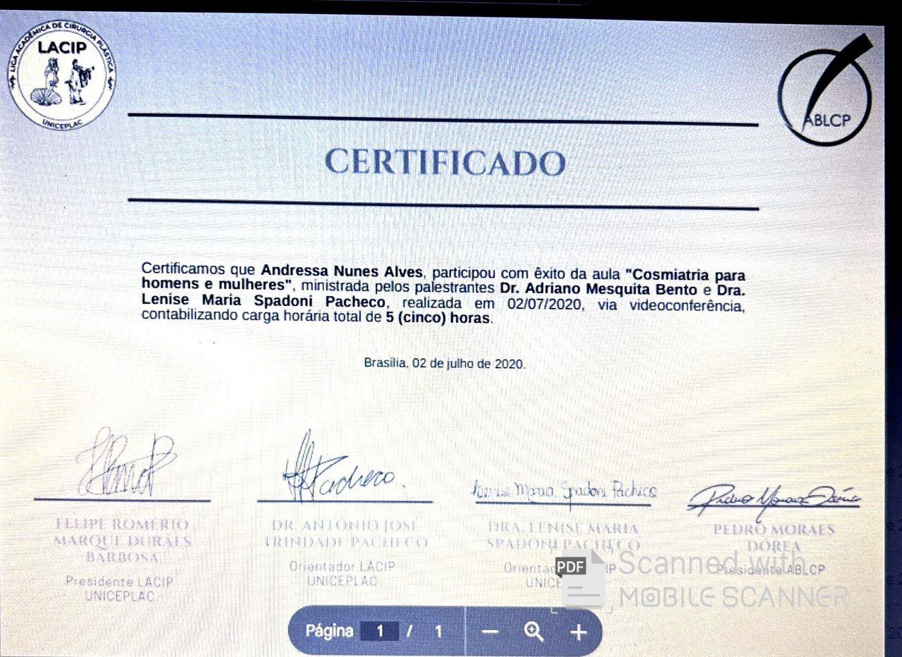 Dra. Andressa Nunes Alves. CRM/PA 20427 e CRM/DF 35454