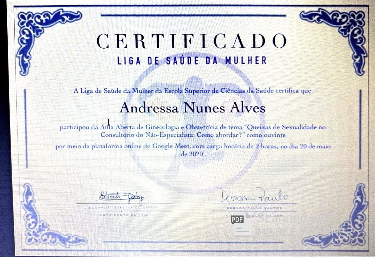 Quando poderia me consultar com Andressa Nunes Alves?Entre em contato diretamente com Andressa Nunes Alves para verificar sua disponibilidade.