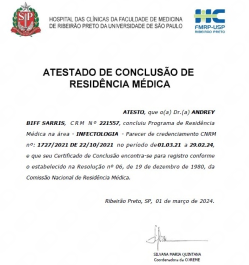 > Residência Médica em Infectologia pelo HCFMRP-USP
