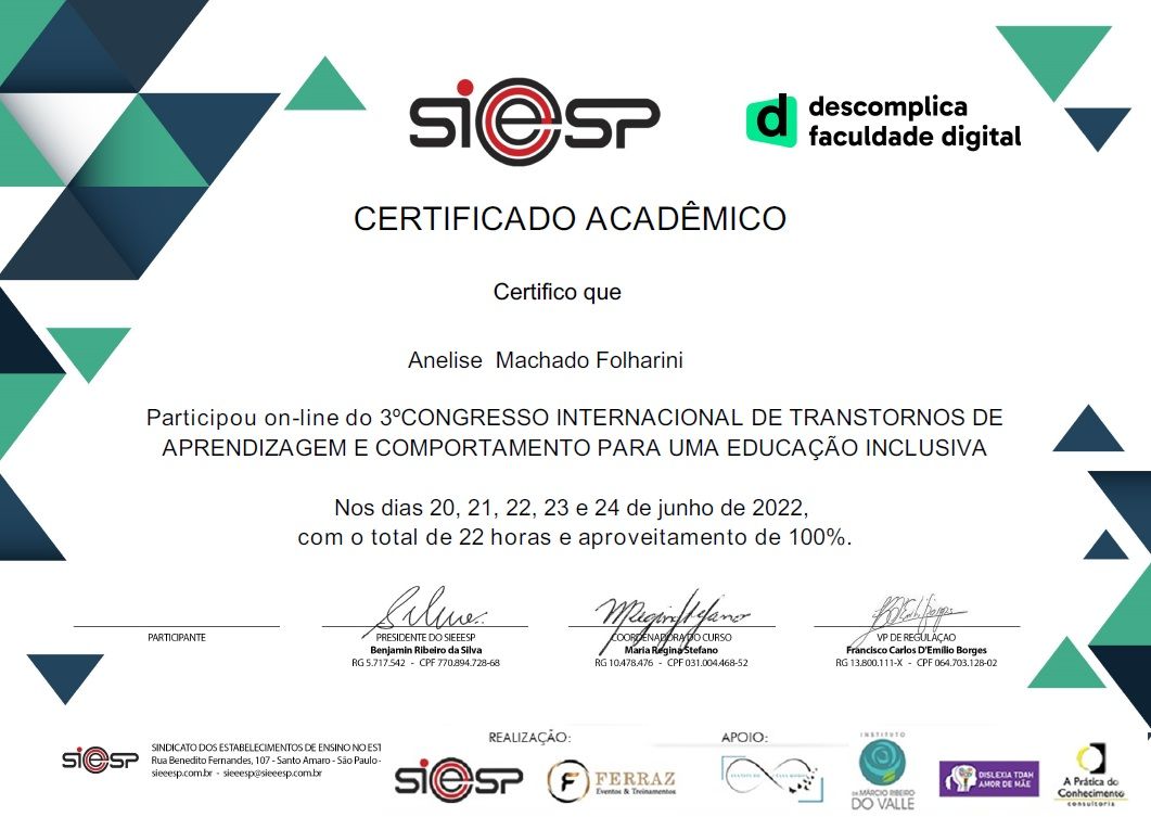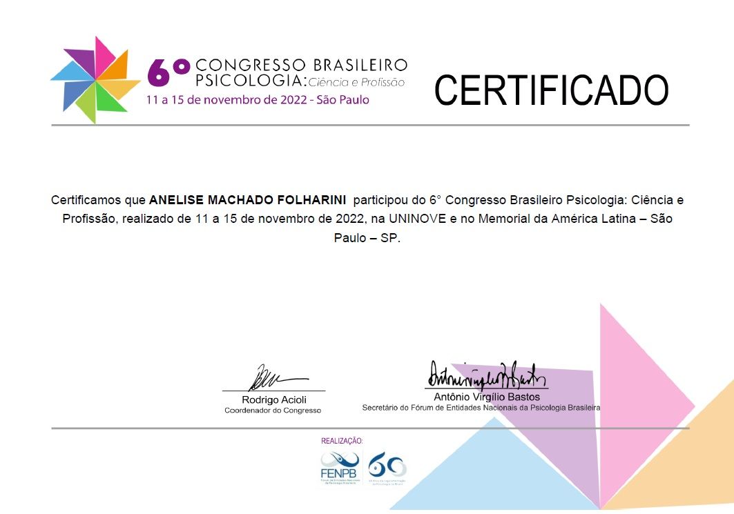Quando poderia me consultar com Anelise Folharini?Anelise Folharini costuma ter horários disponíveis dentro da mesma semana ou para a semana seguinte. Verifique o calendário: você verá o primeiro horário disponível, atualizado em tempo real. Caso o horário sugerido não funcione para você, verifique outras datas. Agendar uma consulta é sempre imediato e gratuito.