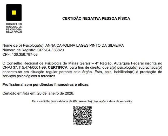 Acredito na psicoterapia como um processo colaborativo, que promove autonomia, autoconhecimento e mudanças consistentes. Meu compromisso é proporcionar um ambiente seguro, onde cada paciente possa compreender seus padrões, fortalecer recursos internos e construir formas mais saudáveis de lidar com seus desafios.