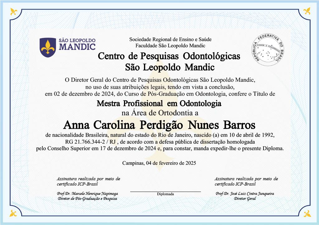 Graduada em Odontologia e possui especialização em Ortodontia, área na qual também concluiu seu Mestrado.