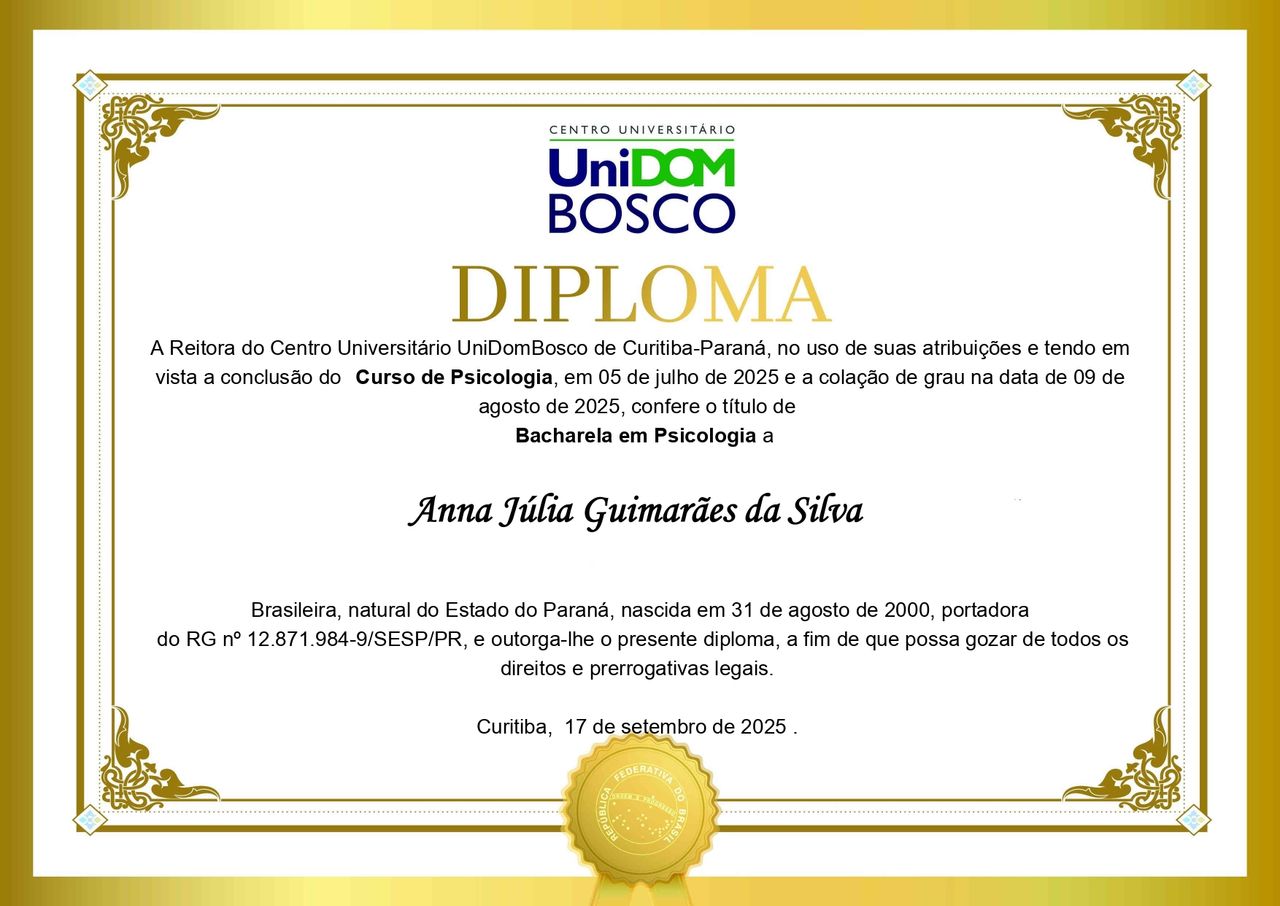 Sou Anna, psicóloga formada pela UniDomBosco. Durante minha trajetória acadêmica, tive a oportunidade de estagiar em duas instituições de ensino que ampliaram profundamente meu olhar sobre as diferentes fases da vida e os desafios que as acompanham. Hoje, sigo movida por um interesse genuíno pela psicologia social e estou à frente do Projeto Encontro, uma iniciativa de ação social em Curitiba.