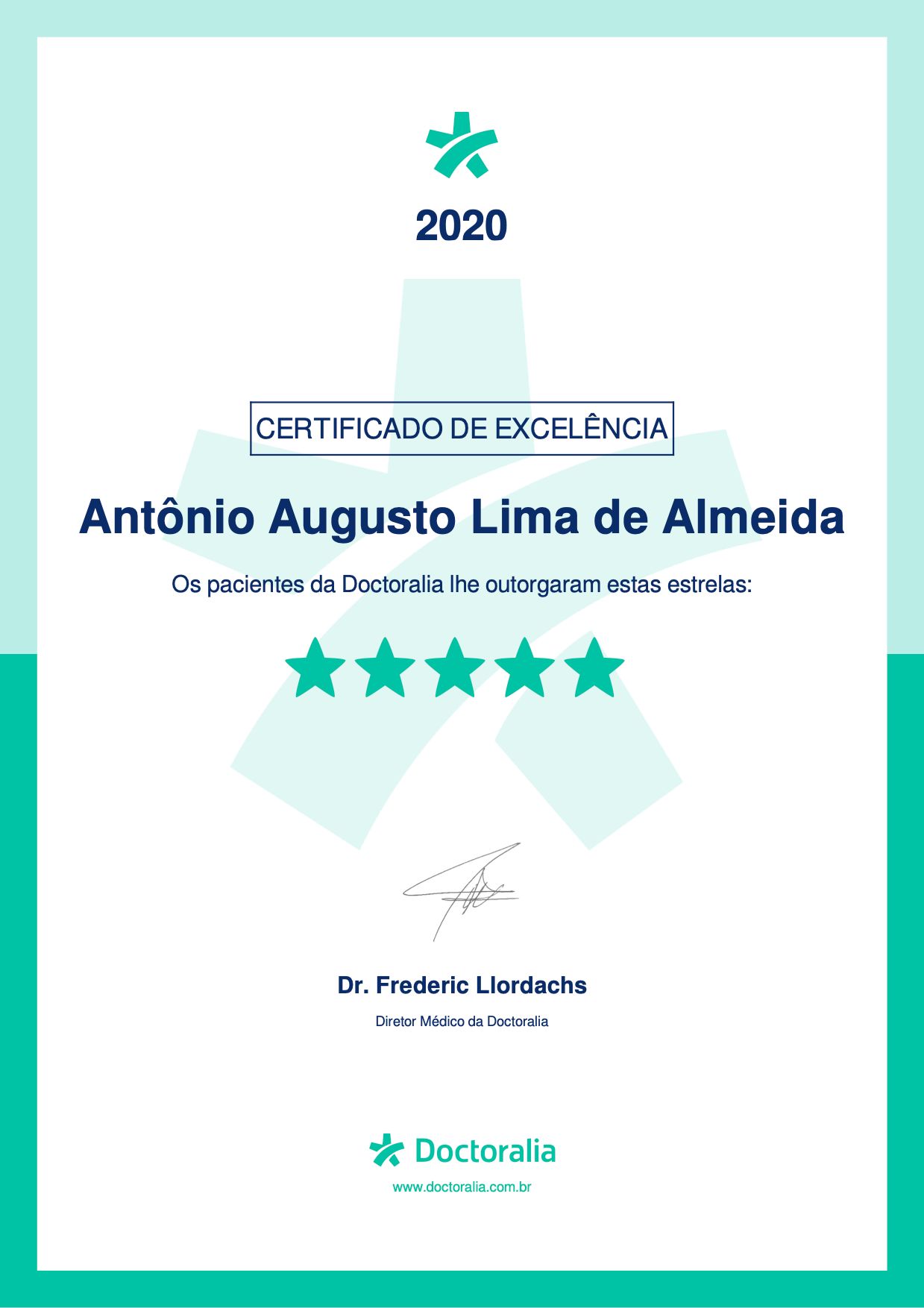 Como posso marcar uma consulta com Antônio Augusto Lima de Almeida?O calendário que Antônio Augusto Lima de Almeida exibe em seu perfil na Doctoralia é atualizado em tempo real. Tudo o que precisa é escolher o dia e a hora que forem mais convenientes para você. O agendamento é gratuito e você também recebe um lembrete antes da consulta.