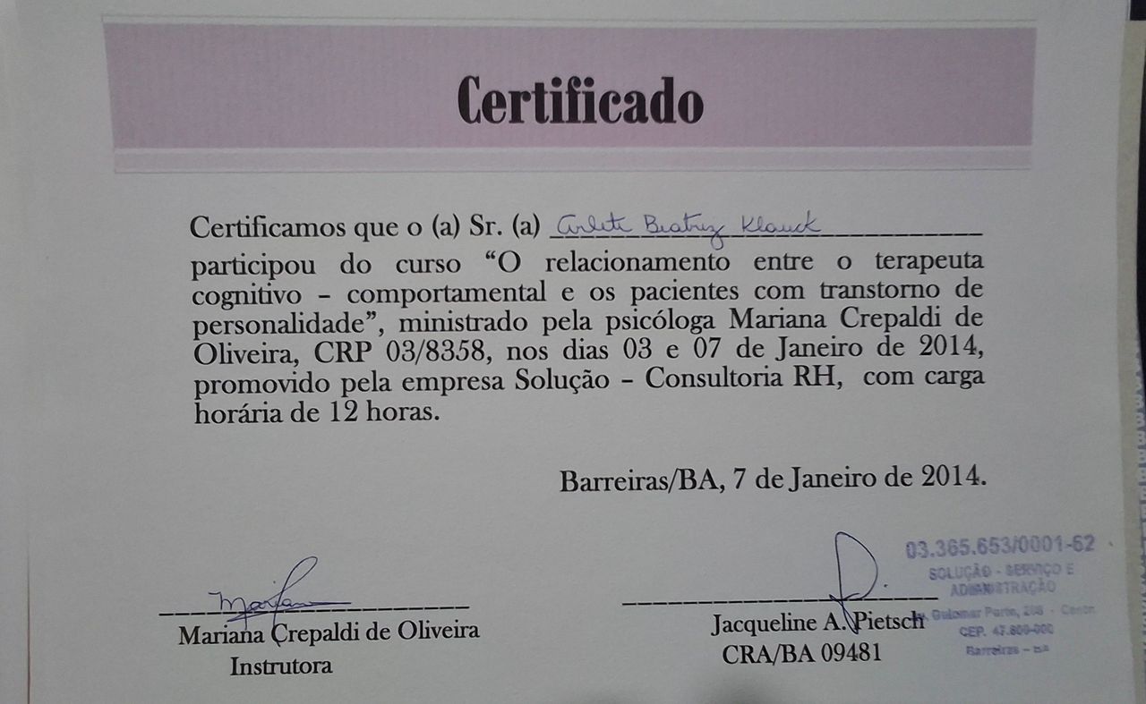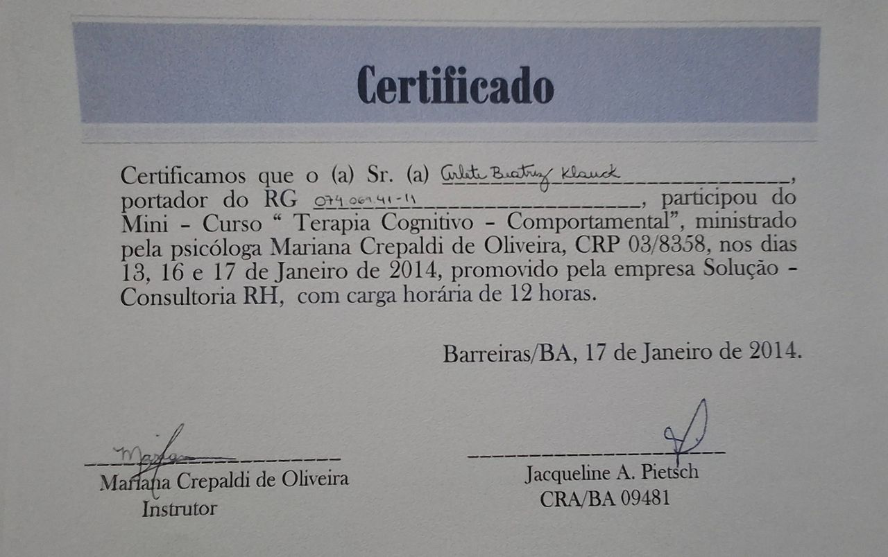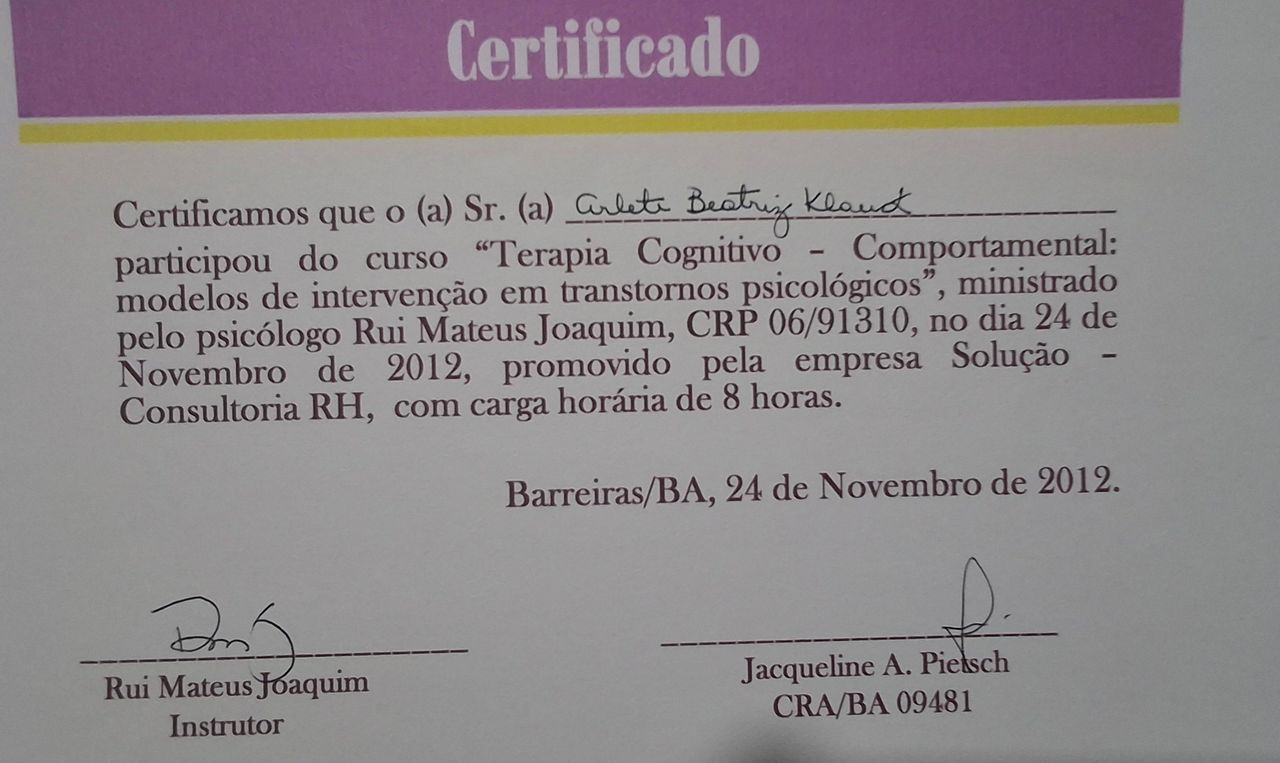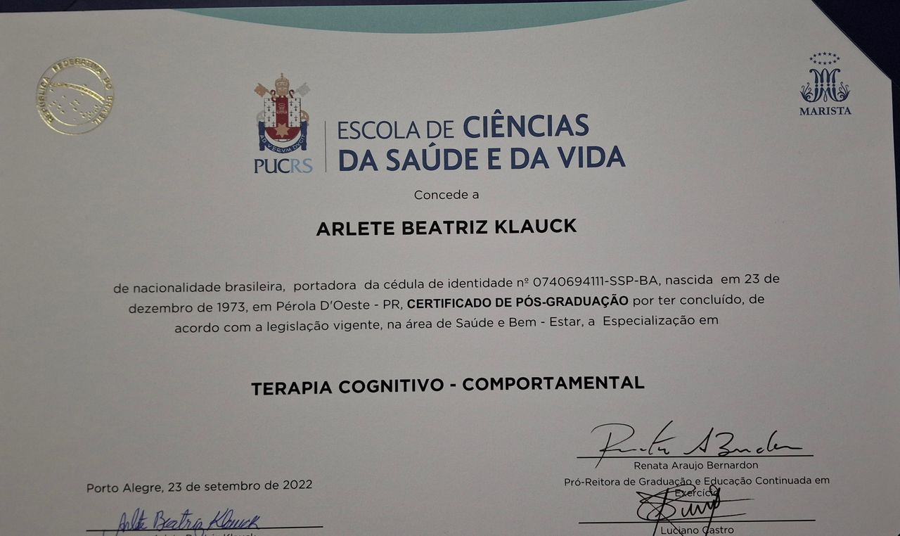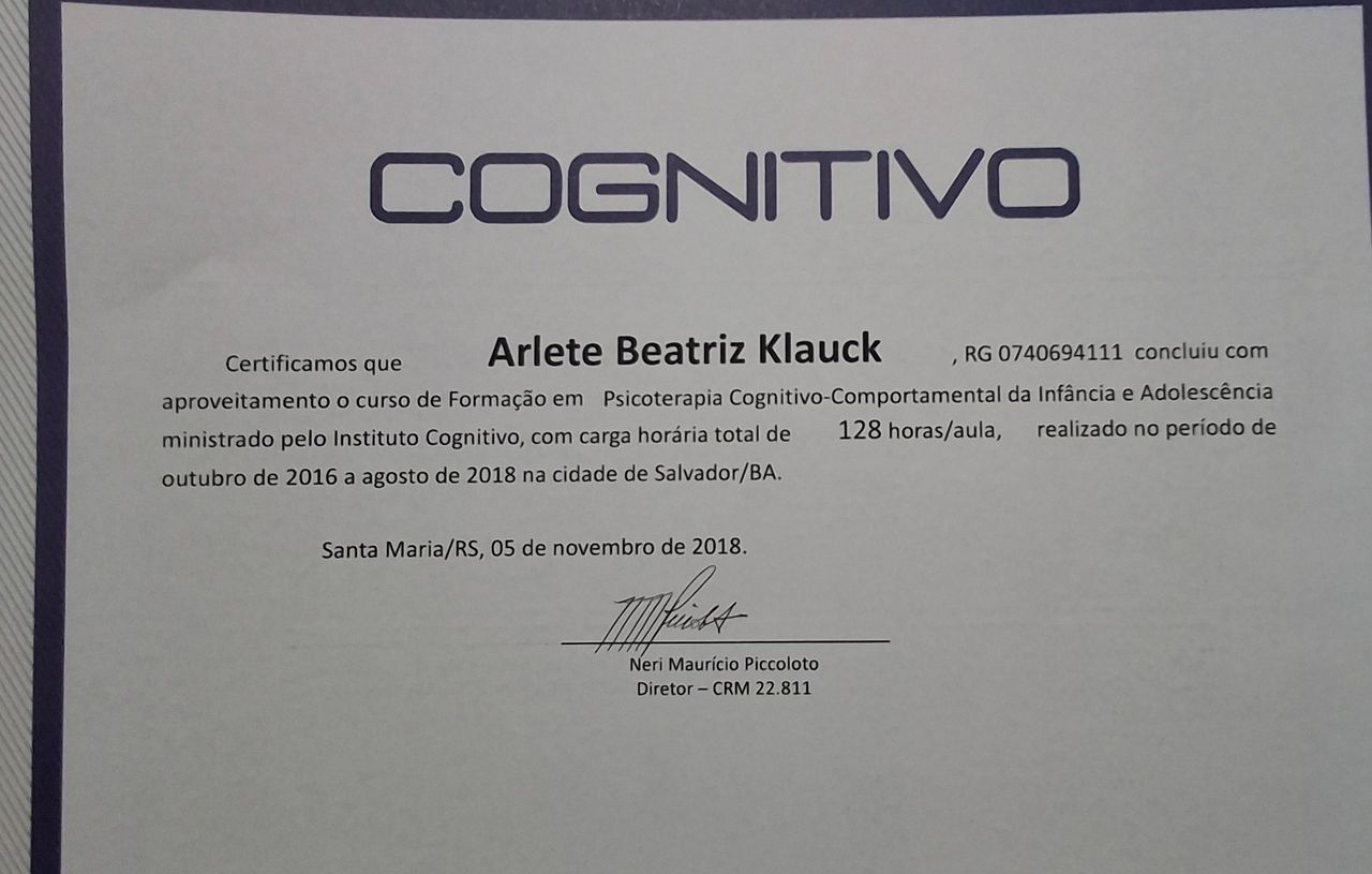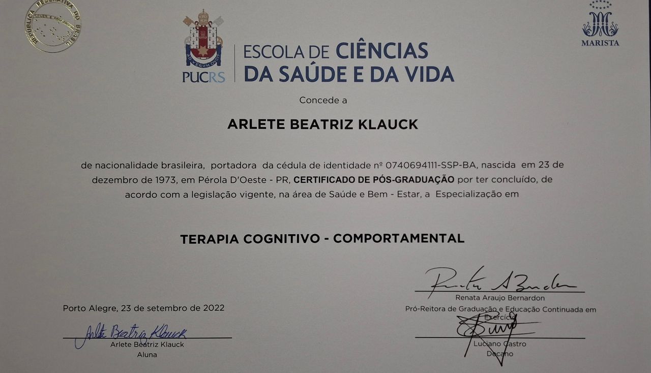 • Arlete Klauck Psicologia Integrada • Terapia Cognitivo Comportamental •