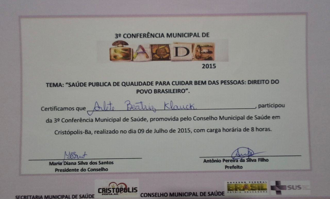 Quando poderia me consultar com Arlete Klauck?No momento não há horários disponíveis com Arlete Klauck, já que sua agenda está cheia nas próximas semanas. Recomendamos que entre em contato com Arlete Klauck para tentar um encaixe ou caso deseje agendar sua consulta mais para frente.