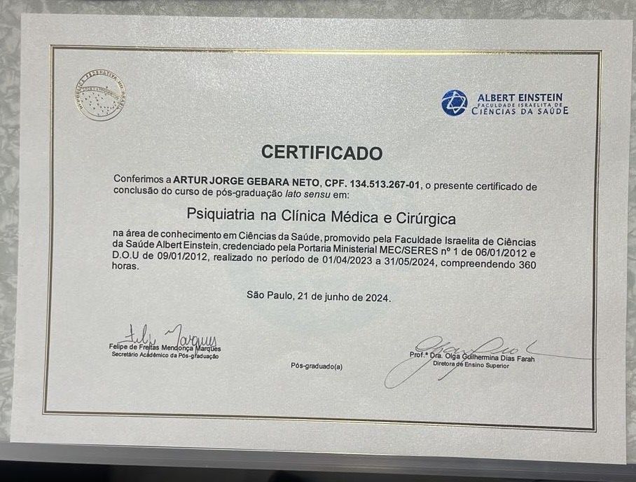 Sou especialista em Medicina de Família e realizei pós-graduação em Psiquiatria no Hospital Albert Einstein em São Paulo