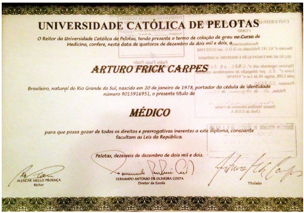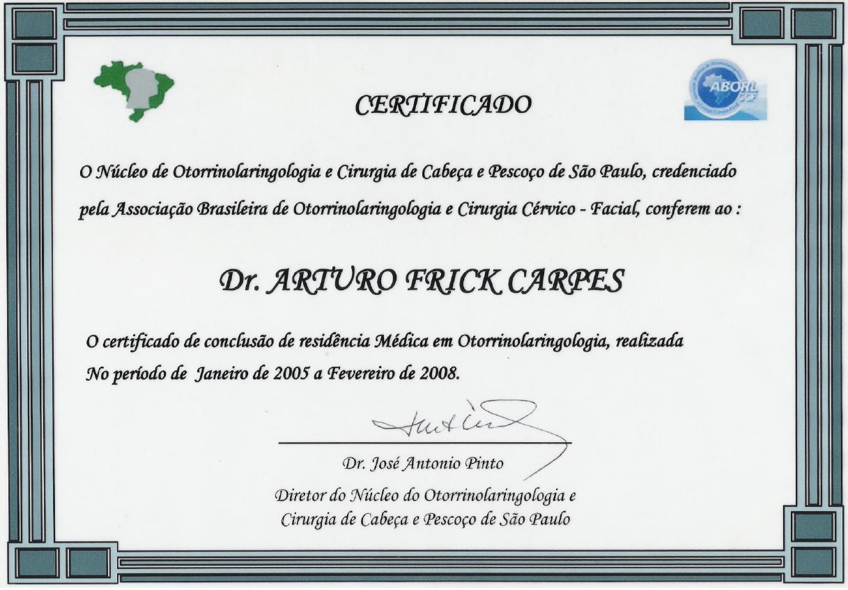Dr.Arturo Frick Carpes , sempre um excelente médico , extremamente capacitado e muito atencioso . Realiza exames minuciosos , inclusive Tomografia no próprio consultório e nos esclareceu muito bem sobre os resultados . Sua clínica é de alto padrão , moderna e muito bem aparelhada . Não poderia ser melhor ! Secretárias muitos cordiais e nos recebe muito bem . Super recomendo, nota mil !