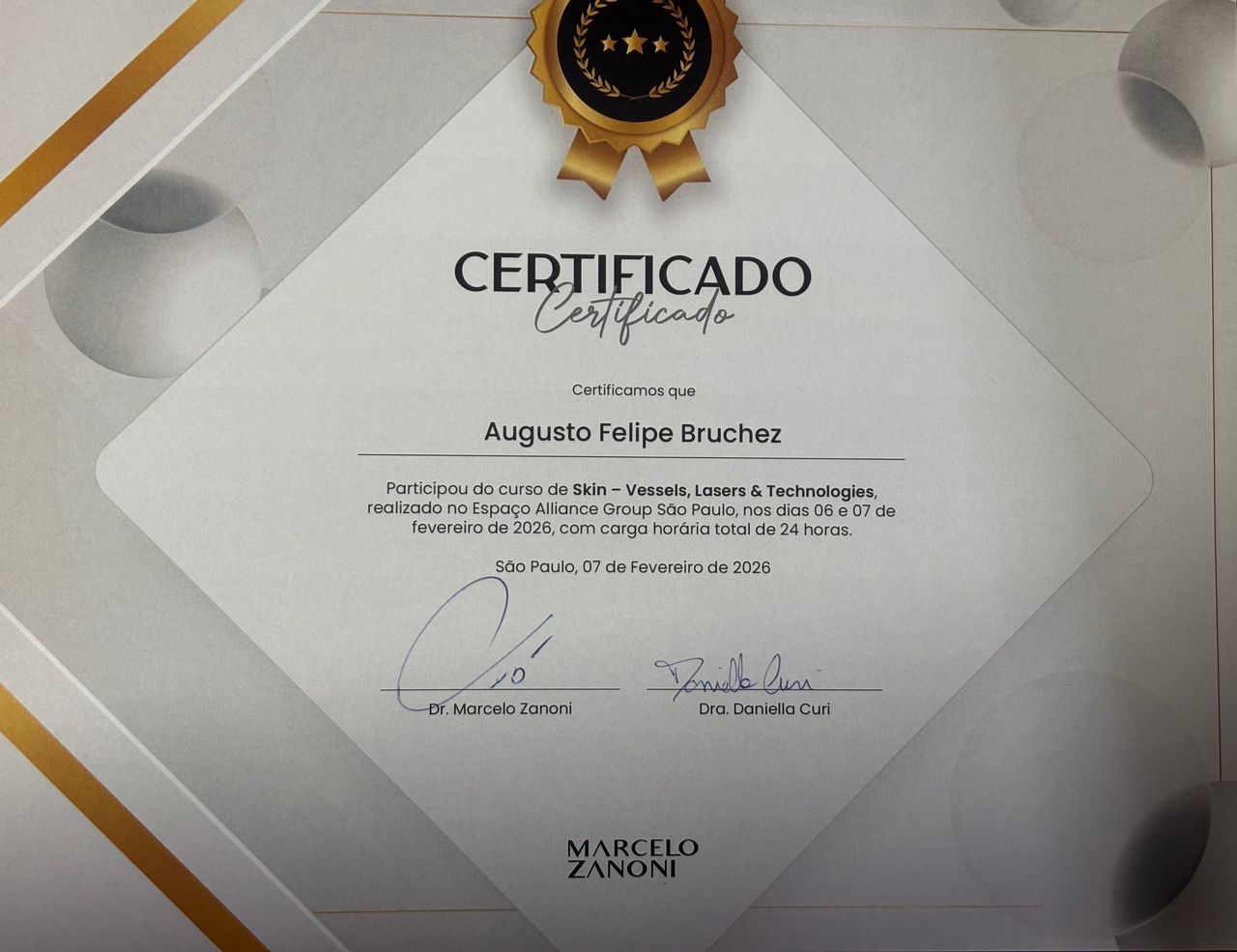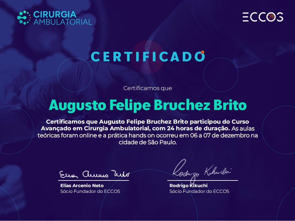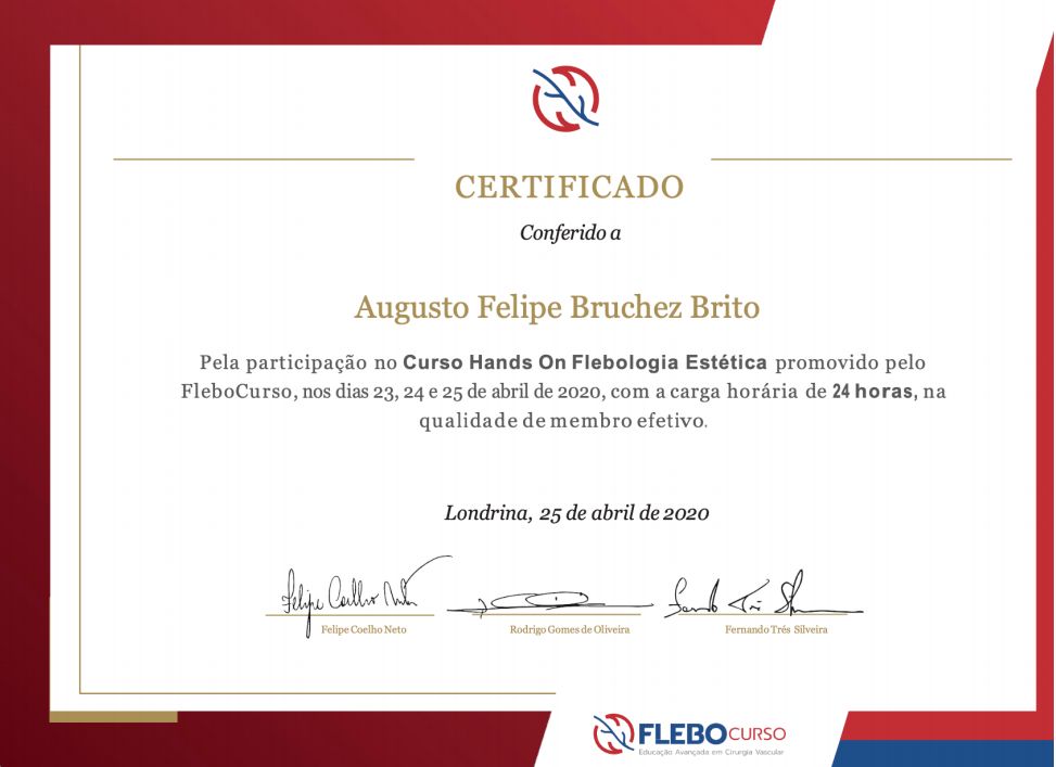 Mantenho-me em atualização constantemente com diversos cursos de aperfeiçoamento venoso, arterial e dermatológico dos membros inferiores.