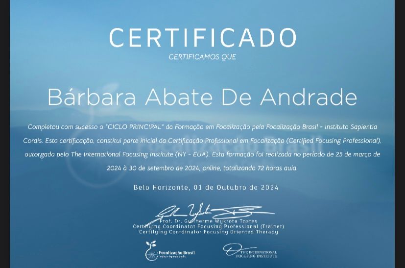 Faço terapia com a Barbara faz um tempo, procurei vários outros profissionais antes, mas nenhum teve a atenção e perspicácia que ela tem. Obrigado por tudo