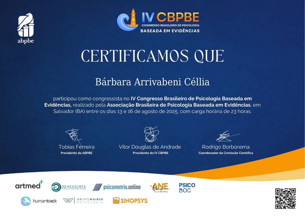 Gostaria de expressar minha total admiração pelo trabalho tão excepcional e de expertise, que são verdadeiramente notáveis na Psicologia.