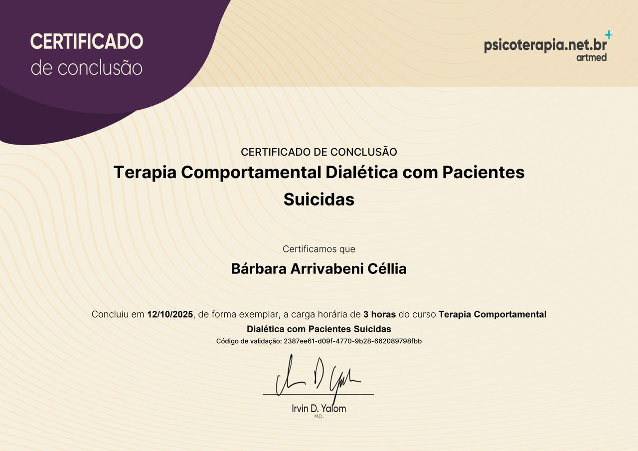 Quero deixar registrado o quanto sou grata pelo atendimento da Bárbara. Ela é uma profissional extremamente acolhedora, ética e atenciosa. Desde a primeira consulta, me senti ouvida e compreendida de verdade. Seu olhar cuidadoso e a forma como conduz as sessões fizeram toda a diferença no meu processo. Me ajudou a enxergar com mais clareza, me fortaleceu emocionalmente e continua sendo um apoio fundamental na minha trajetória. Recomendo de coração. Excelente profissional e ser humano!