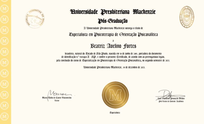 Sou psicóloga formada pela Universidade Presbiteriana Mackenzie, Especialista em Clínica de Orientação Psicanalítica e tenho grande experiência em atendimentos clínicos com adolescentes e adultos. Eu te ajudarei a lidar com o sofrimento mental, criando um ambiente seguro e acolhedor para que você possa ser escutado, sem julgamentos. Realizo atendimentos clínicos de maneira online e presencial.