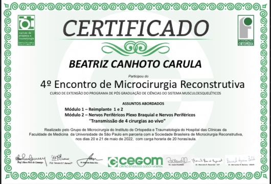 Fellowship Microcirurgia Reconstrutiva- Universidade de São Paulo (USP)- 2022