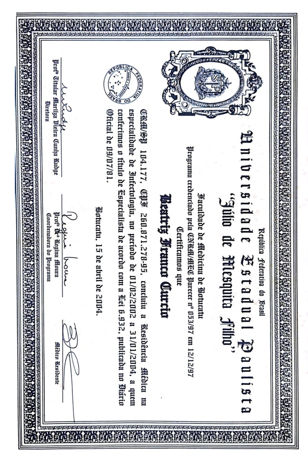 Médica infectologista pela Faculdade de Medicina de Botucatu UNESP, com vasta experiência como generalista pela Estratégia de Saúde da Família atuando exclusivamente pelo SUS, atendendo desde o pré-natal, puericultura, clínica geral, ginecologia, geriatria, atenção domiciliar e cuidados paliativos.