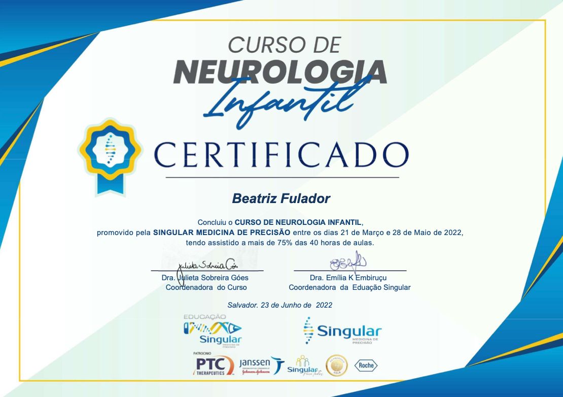 Quais são as principais especialidades de Beatriz Fulador?Beatriz Fulador é neurologista. Te mostramos alguns dos serviços oferecidos pelo especialista graças à sua trajetória e vasta experiência: Primeira consulta neurologia, Primeira consulta neurologista, Consulta de neurologia com retorno em até 30 dias, Teleconsulta.
