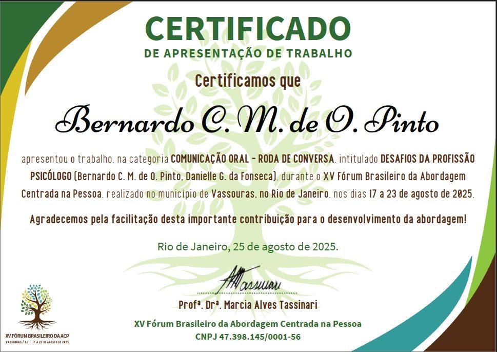 Olá, eu sou o Bernardo! Sou psicólogo e trabalho com a Abordagem Centrada na Pessoa (ACP) desde 2017.
