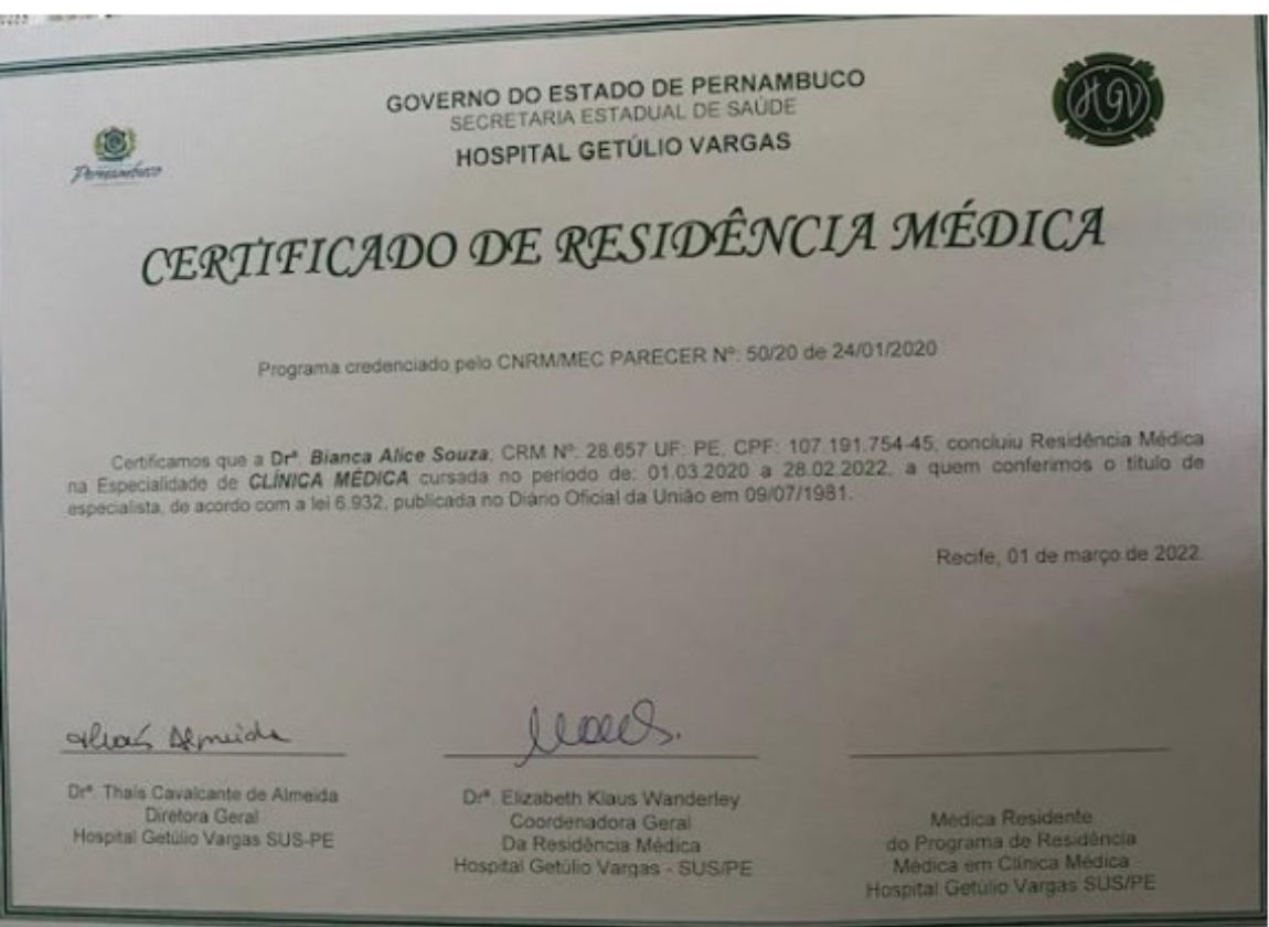 Médica formada pela Universidade Federal de Pernambuco