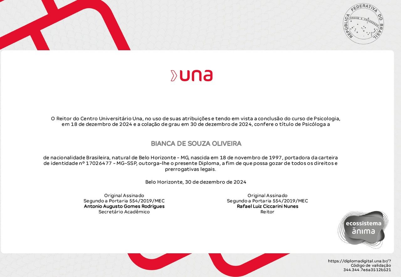 Você já passou por consulta com Bianca Souza Oliveira? Conte aqui como foi. Outros pacientes vão te agradecer por ajudá-los a escolher o melhor especialista.