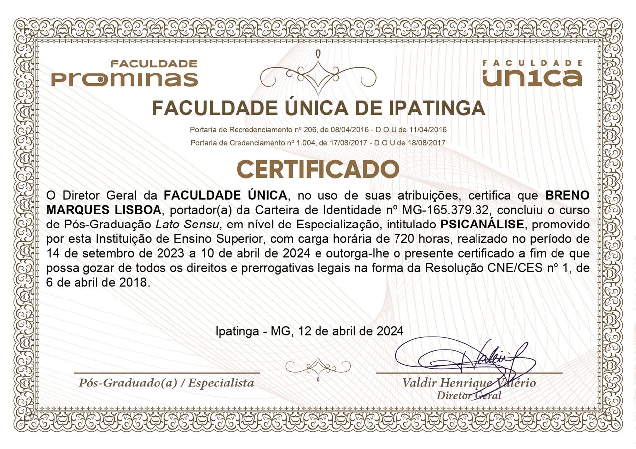 Olá, que bom receber você aqui no meu perfil! Sou Psicólogo e Psicanalista, mestrando no PPGPSI-UFMG na área de Estudos Psicanalíticos, Pós-graduado em Psicanálise pelo Instituto Prominas, Pós-Graduado em Psicologia Jurídica e Forense e graduado em Psicologia pela Universidade Federal de Minas Gerais (UFMG), com ênfase em Processos Clínicos. Atualmente, sou Psicólogo Clínico vinculado como membro ao grupo Travessias - Percursos em Psicanálise, onde também coordenei e coordeno grupos de estudos em Psicanálise. Atuo com consultório particular, com atendimentos presenciais em Belo Horizonte e on-line também para diversas localidades, inclusive exterior.