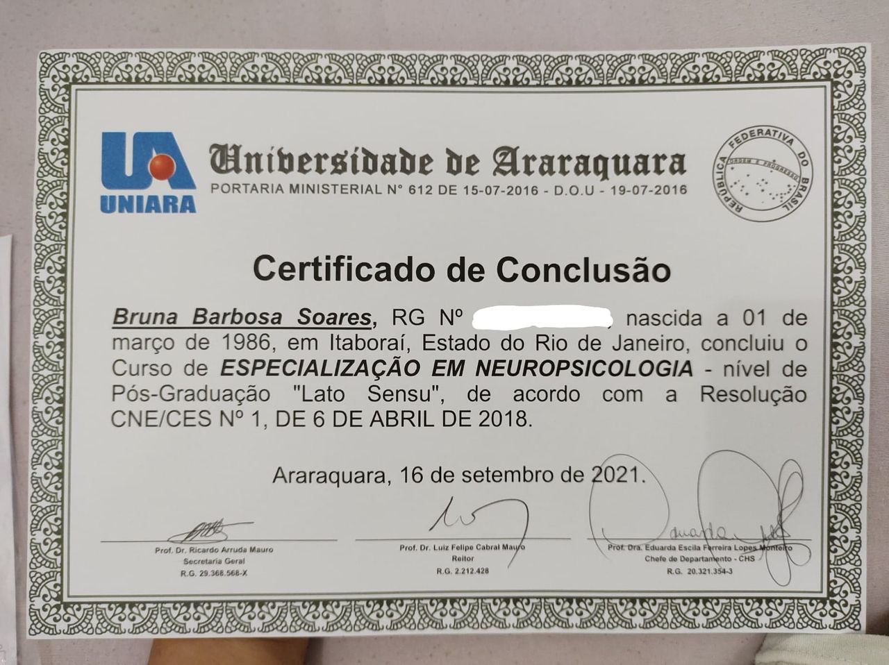 Número de registro: CRP RJ 58234