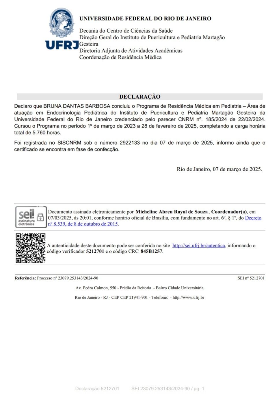 Número de registro: CRM RJ 126415-0 RQE Nº: 55459