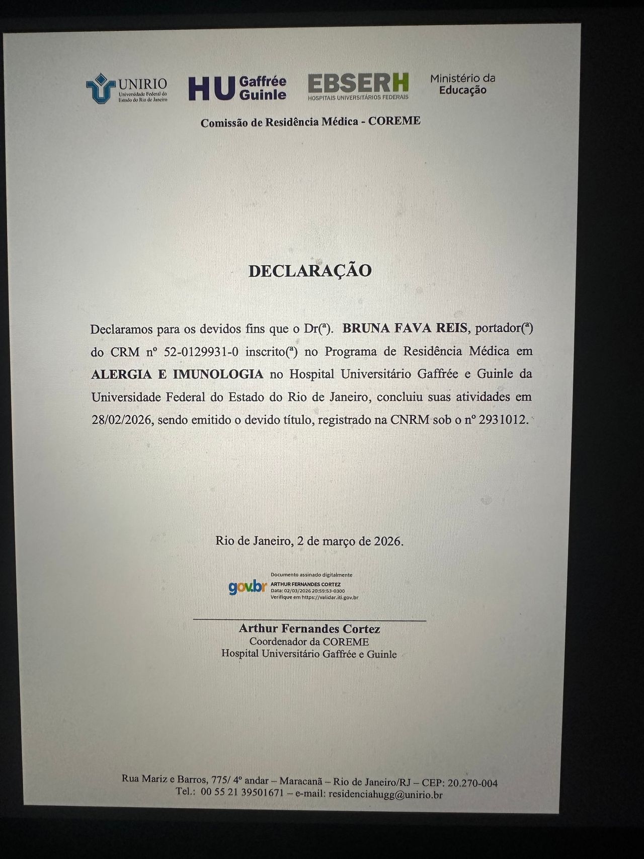 Número de registro: CRM RJ 1299310 - RQE Nº: 59685