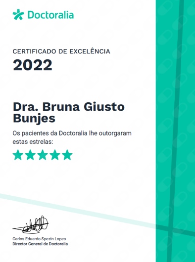 O que outros pacientes opinam sobre Bruna Giusto?Um total de 154 pacientes já deixou uma opinião honesta e real sobre Bruna Giusto, que tem uma avaliação média de 5 estrelas (de 5).