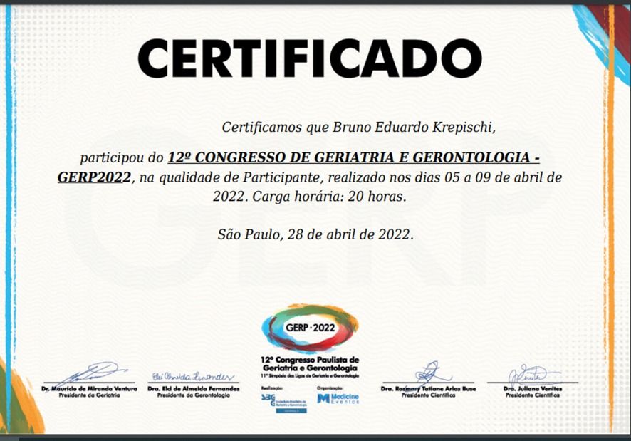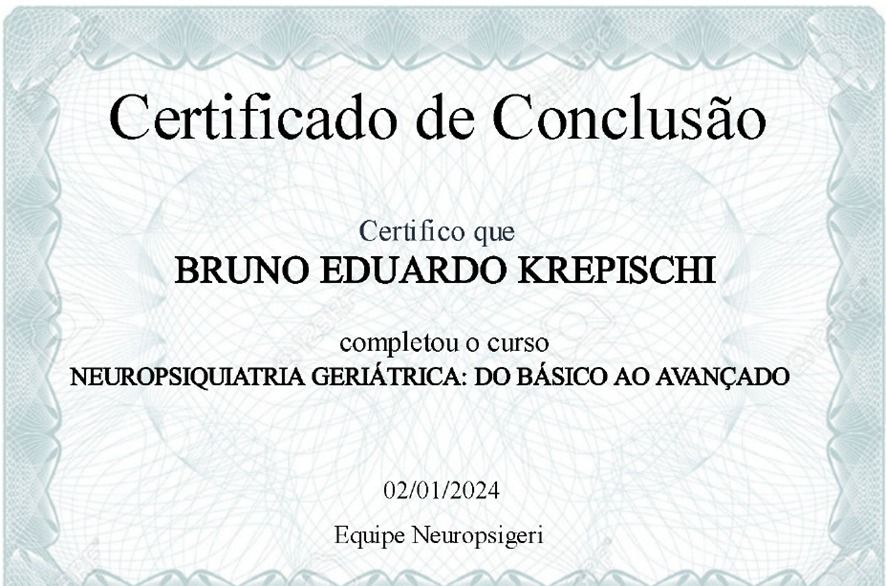 Quais são as principais especialidades de Bruno Eduardo Krepischi?Bruno Eduardo Krepischi é geriatra. Te mostramos alguns dos serviços oferecidos pelo especialista graças à sua trajetória e vasta experiência: Consulta domiciliar, Envelhecimento saudável, Avaliação Cognitiva, Tratamento de hipotireoidismo, Tratamento para dor crônica, Atendimento para a depressão na terceira idade, Tratamento de demências, Atendimento domiciliar, Tratamento da ansiedade, Check up.