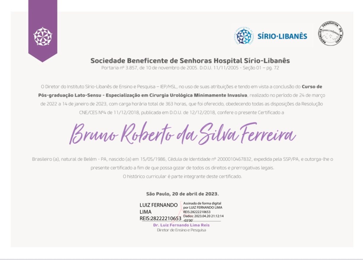 Cirurgia Urológica Minimamente Invasiva - Hospital Sírio-Libanês (São Paulo-SP).