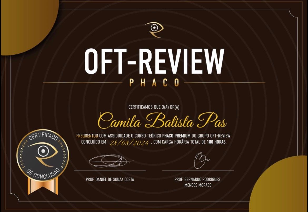 Sou apaixonada pela oftalmologia e acredito no atendimento humanizado e na valorização do paciente como norteadores para uma boa consulta médica.