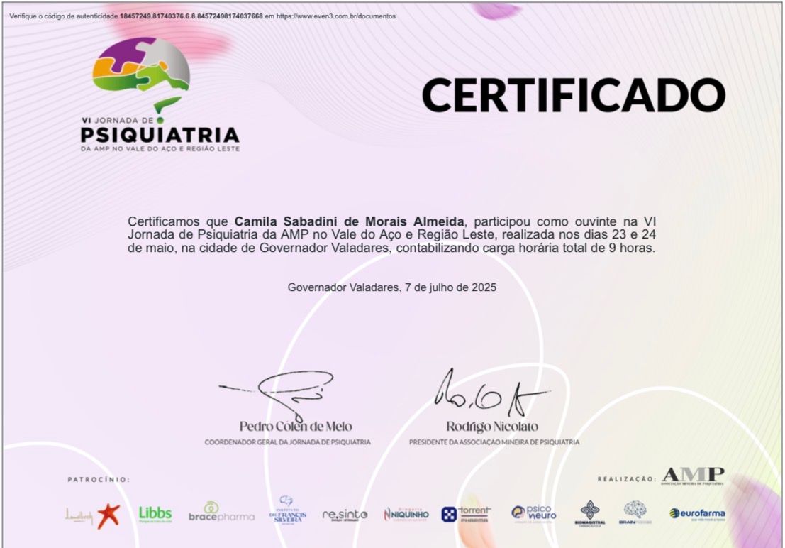 Apaixonada por saúde mental e com experiência em transtornos ansiosos, depressivos e de personalidade.