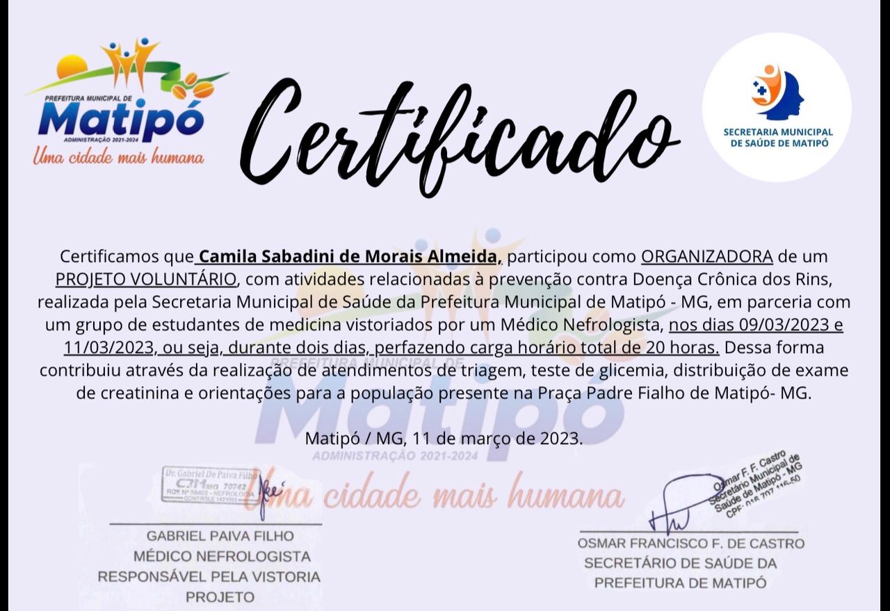 Seja bem vindo querido paciente, me chamo Camila, sou médica clínica geral formada pelo Centro Universitário Univértix.