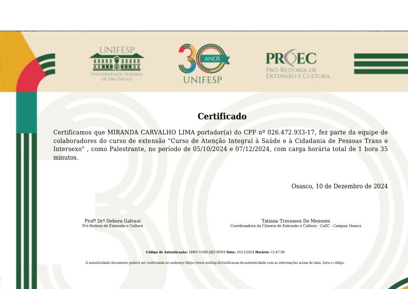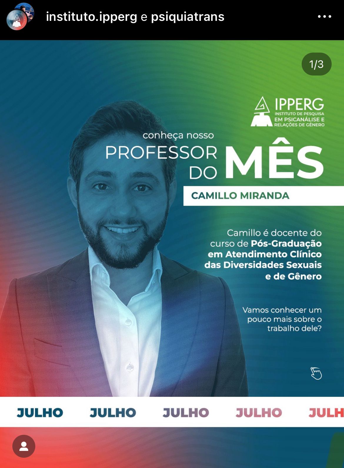 Também atuei como preceptor de residência médica, fui psiquiatra do Núcleo Trans da UNIFESP e sou professor da Pós-Graduação em Atendimento Clínico das Diversidades Sexuais e de Gênero (IPPERG).