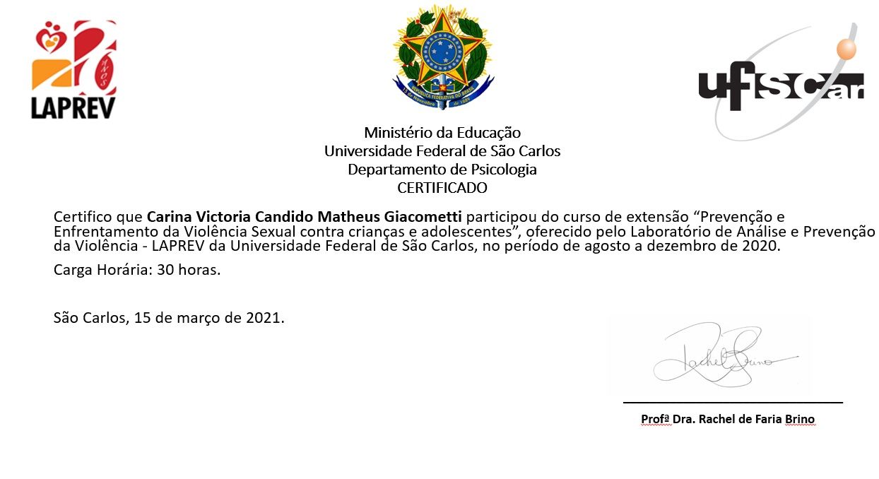 O atendimento é sigiloso• Carina V. C. Matheus Giacometti ONLINE • Primeira consulta psicologia •