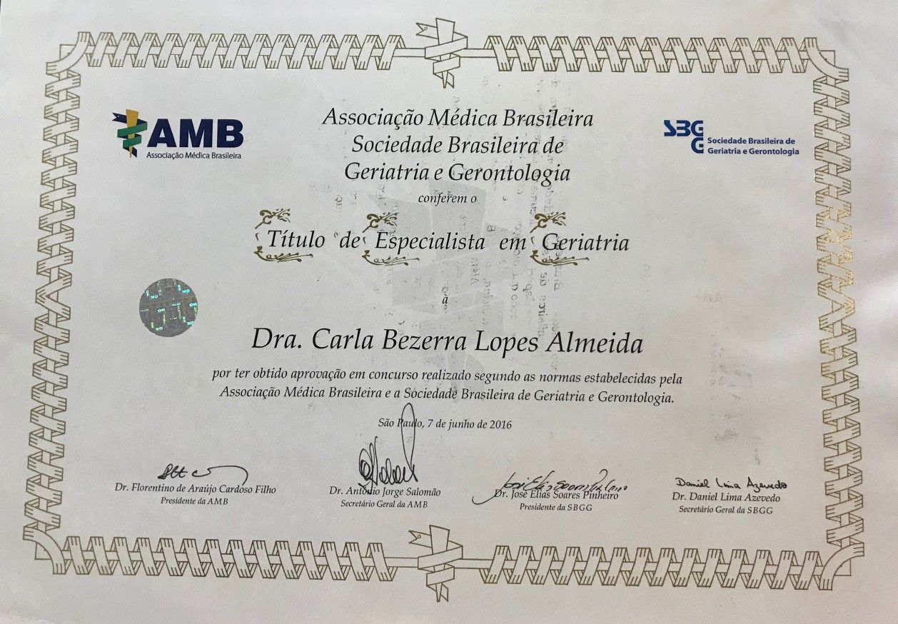 • CARLA BEZERRA LOPES ALMEIDA • Consulta geriatra •