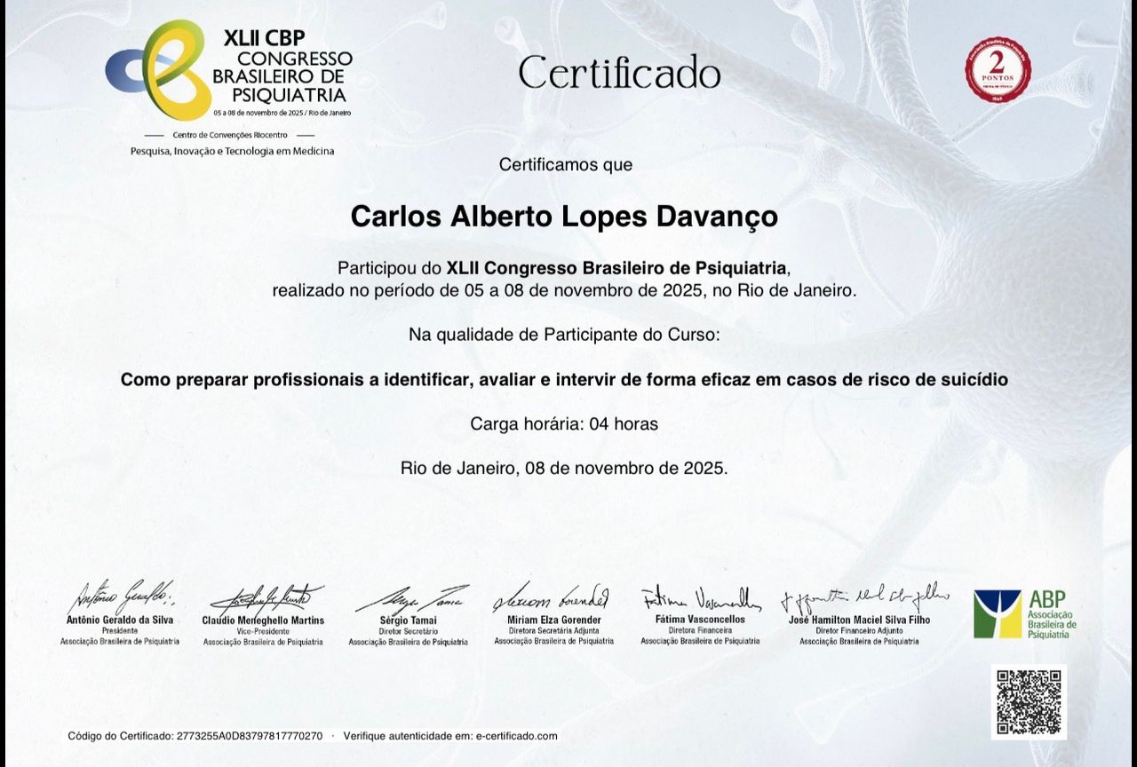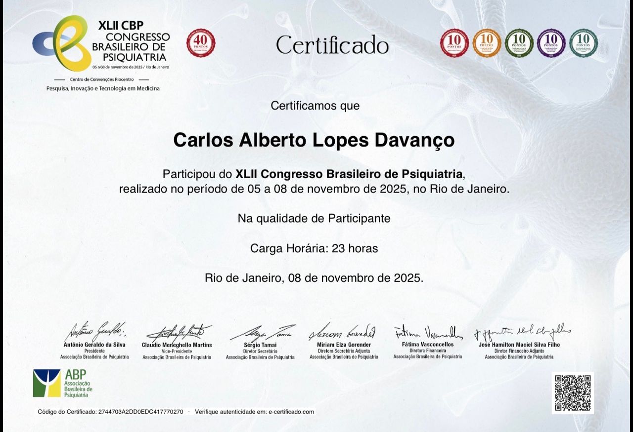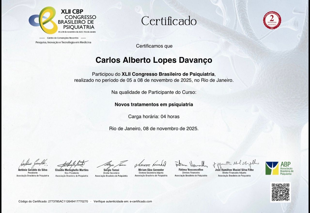Meu compromisso é ir além do diagnóstico, auxiliando cada pessoa a recuperar equilíbrio emocional, funcionalidade e qualidade de vida, com um olhar humano e responsável sobre a saúde mental.