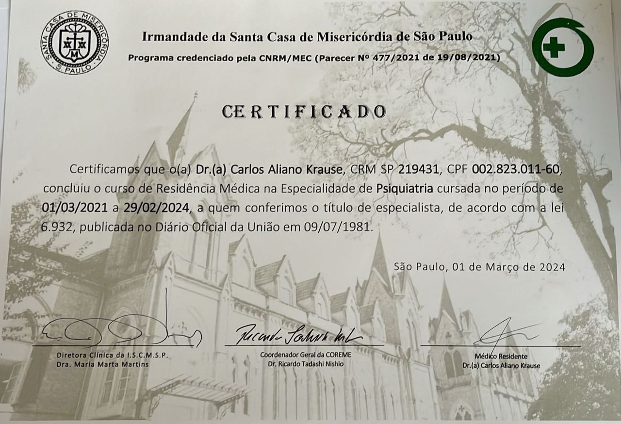 Sou Carlos, médico psiquiatra formado pela Santa Casa de São Paulo, com atuação em dependências químicas e comportamentais. Minha jornada na psiquiatria vai além do diagnóstico e da prescrição: vejo a prática médica como um encontro genuíno, uma oportunidade de compreender cada pessoa em sua singularidade, sem imposições ou reducionismos.