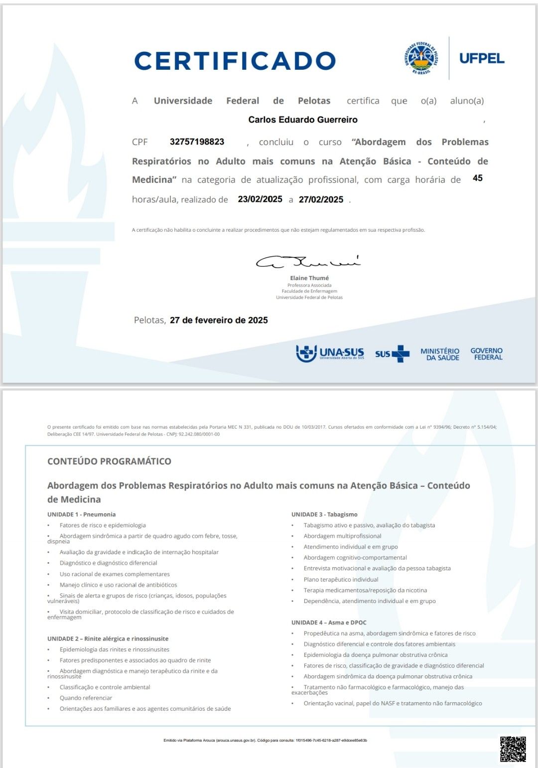 Quando poderia me consultar com Carlos Eduardo Guerreiro?Carlos Eduardo Guerreiro costuma ter horários disponíveis dentro da mesma semana ou para a semana seguinte. Verifique o calendário: você verá o primeiro horário disponível, atualizado em tempo real. Caso o horário sugerido não funcione para você, verifique outras datas. Agendar uma consulta é sempre imediato e gratuito.