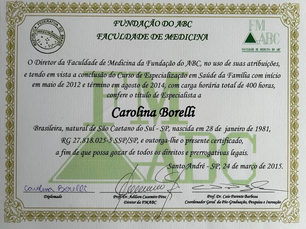 Quais são as principais especialidades de Carolina Borelli?Carolina Borelli é nutróloga, médica de família. Te mostramos alguns dos serviços oferecidos pelo especialista graças à sua trajetória e vasta experiência: Primeira consulta nutrologia, Retorno de consultas Nutrologia, Promoção da saúde, Check up, Acompanhamento nutricional no pré e pós-operatório da cirurgia bariátrica, Avaliação nutricional, Tratamento de obesidade, Consulta de retorno, Emagrecimento consciente, Consulta nutrologia.