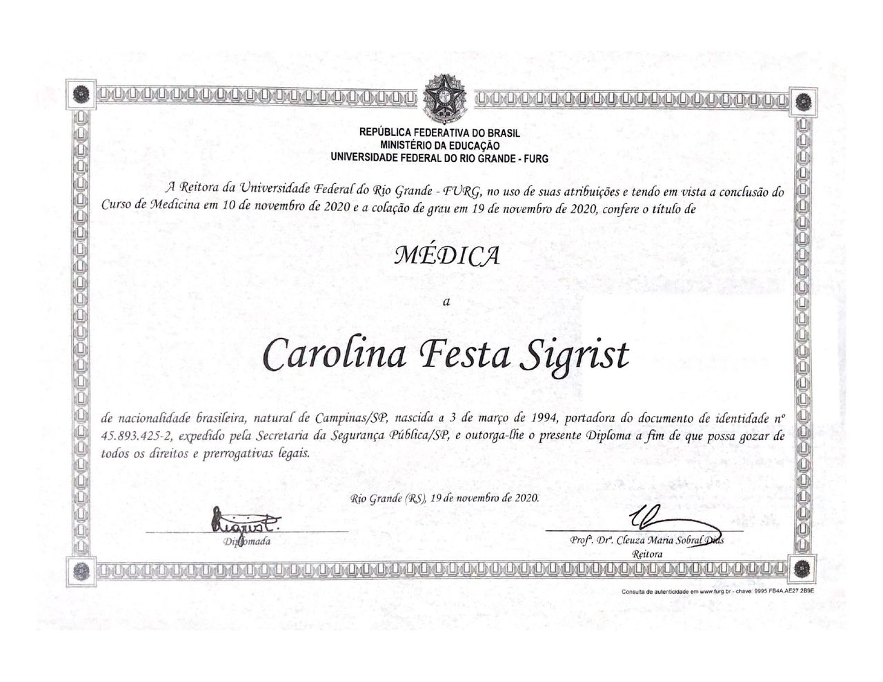 Você já passou por consulta com Carolina Festa Sigrist? Conte aqui como foi. Outros pacientes vão te agradecer por ajudá-los a escolher o melhor especialista.