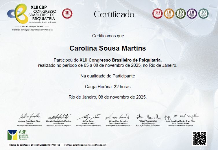 Quando poderia me consultar com Carolina Martins?Entre em contato diretamente com Carolina Martins para verificar sua disponibilidade.